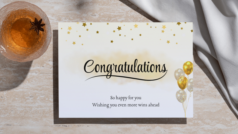 1 high-quality printable Congratulations card (PDF ) Size: 4" x 6" (can be printed or sent digitally) Instant download – ready to use